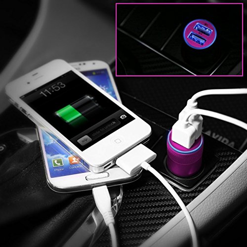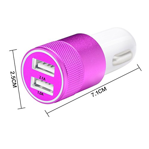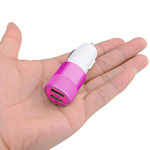 Universal Metal 12 Volt / 1 ~ 2 Amp Dual USB Port Car Charger for iPhone Samsung Smartphone(Hot Pink)
