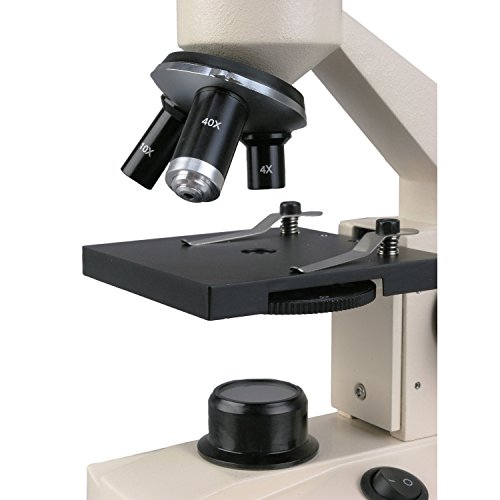 AmScope Optical Glass Lens All-Metal LED Compound Microscope, 6 Settings 40x-1000x, Portable AC or Battery Power