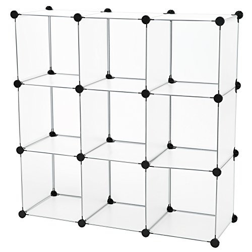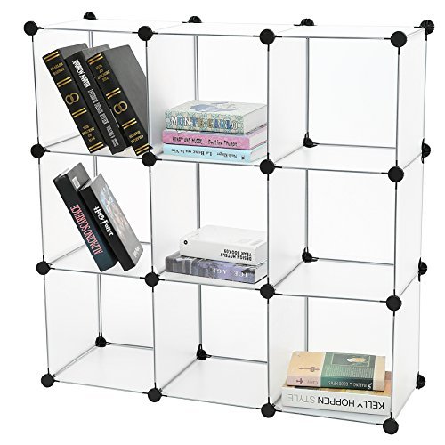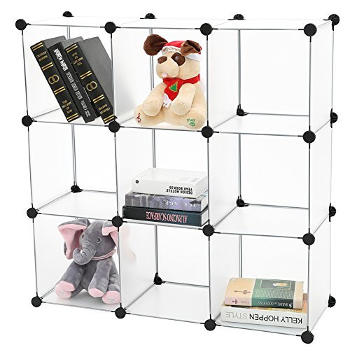 C&AHOME 9 Cube Storage Organizer Closet Shelf DIY Bookcase Toy Rack, Translucent