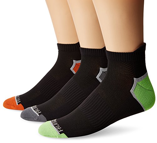 -. Binding : Apparel -. Brand : Fruit of the Loom -. Department : mens -. Feature : Cooling nylon fabric quickly wicks away sweat so feet stay dry and comfortable / Breathable micro mesh panels provide optimal ventilation for faster drying / Durable cushioned sole with extra padding in the foot for shock absorption / Arch support prevents bunching and keeps the sock from sliding down into the shoe / Spandex knitted throughout for a streamlined performance fit -. Label : Fruit of the Loom Men's Socks -. Manufacturer : Fruit of the Loom Men's Socks -. ProductGroup : Apparel -. ProductTypeName : SOCKSHOSIERY -. Publisher : Fruit of the Loom Men's Socks -. Studio : Fruit of the Loom Men's Socks -. Title : Fruit of the Loom Men's Breathable Half Cushion Low Cut Tab 3 Pack Sock
