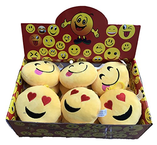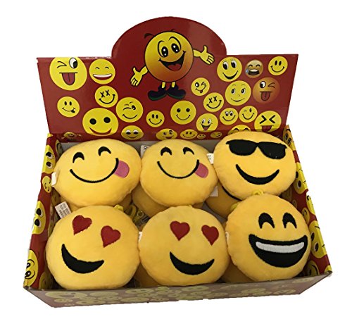 Creative Motion 22066-3 6.25" Height Emjoi Keychain (Assorted 12 Pcs with A Display with 4 Different Designs), Backpack, Home Office Event Give Away Party Xmas Gift,