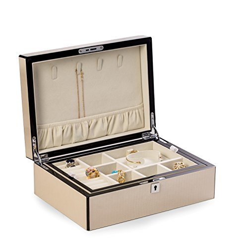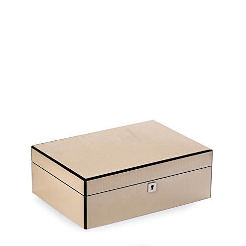Time Factory AJ-BB599IVR Lacquered White Jewelry Box with Etched Croco Design in Wood, Ivory