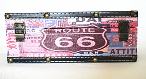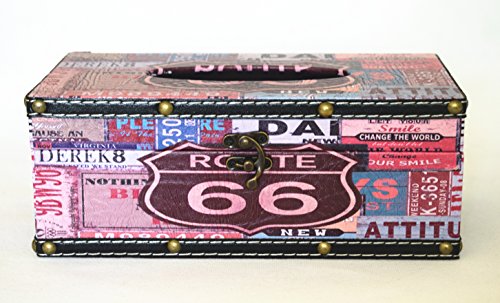 Vintage Tissue Box Cover Holder Rectangular Tissue Box Leather and wood Tissue Box for Home Decorations Photography Props (Route 66)