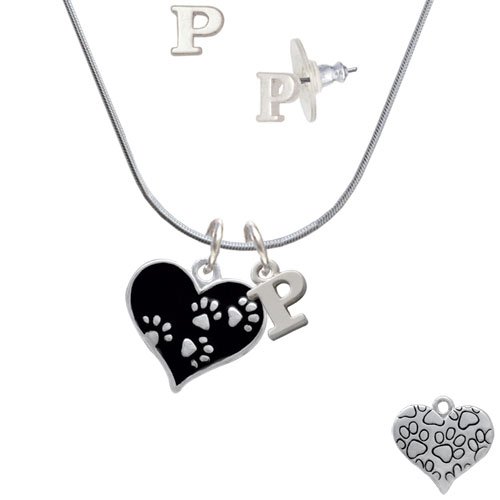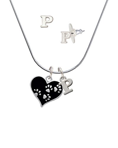 -. Binding : Jewelry -. Brand : Delight Jewelry -. Color : black -. Department : womens -. Feature : Silvertone Black Enamel Heart with Paw P.R.Ints - P Initial Charm Necklace and Stud Earrings Jewelry Set. / Charm size is approx. 0.73 x 0.76 x 0.1 inches (HxWxD) including loop. / Mini Initial Stud Earrings are approx. 0.28 x 0.34 inches (HxW) with steel posts. Earring backs are Bullet ''Clutch'' Style with Plastic Pad. / Small Initial Pendant is approximately 0.45 inches tall including loop. 18 Inch Snake Chain Necklace with a Lobster Claw Clasp. / Charming jewelry set makes a wonderful personalized gift. -. Label : Delight and Co. -. Manufacturer : Delight and Co. -. Model : 1607-NC-C4144-C2306-F1079-F1882-P -. MPN : 1607-NC-C4144-C2306-F1079-F1882-P -. PartNumber : 1607-NC-C4144-C2306-F1079-F1882-P -. ProductGroup : Jewelry -. ProductTypeName : FASHIONOTHER -. Publisher : Delight and Co. -. Studio : Delight and Co. -. Title : Silvertone Black Heart with Paw P.R.Ints - P Initial Charm Necklace and Stud Earrings Jewelry Set