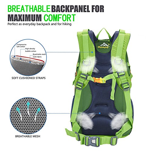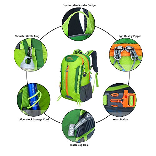 -. Feature : High CAPACITY: Large enough to carry what you need in the trip,It's roomy enough for your hammock, clothes,towel, journal,and a couple beers if needed,etc / DURABLE: The backpack is made from High Quality Water and Tear Resistant Nylon fabric, provide strengthen and long-lasting performance with minimal weight. / MULTIPLE POCKETS:Main Space for most of travel and sports necessities. Surface zipper for your cell phone, MP3 player, Inside zipper pocket and mesh pockets on the sides. / BEARING SYSTEM: Breathable and padded back panel, adjustable sternum strap and shouler strap to meet different requirements for both men and women / VERSATILE: Perfect for hiking,travel,day-to-day use,pack beach accessories, suitcase alternative, storing diapers,college,camping and more,and great gift for everyone.