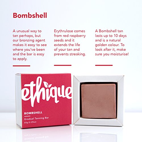 It's here at last! The world's first solid self tanning bar. Perfect for light-medium skin tones,Bombshell will leave you with kissably smooth, golden skin with no streaks. Bombshell contains a bronzer for those who want instant gratification or just to see where they have been. Perfect for a night out. Our bars are just as easy to use as liquid tanners and they contain both erythrulose & DHA for the perfect colour- no orange tones! Each bar is equivalent to over two bottles of liquid tanner and comes in a box for easy storage in your bathroom. Scented with mandarin. For best results exfoliate first and use gloves when applying. Colour develops from 4 hours and is complete at 24 and will last for up to 10 days if skin is kept hydrated.Feature