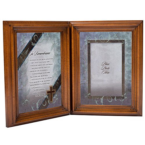 In Remembrance I Thought of You Wood Finish Hinged 5 x 7 Memorial Double Photo Frame