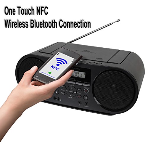 All-in-One Features: NFC One-touch connection to smartphones / Record from CD to USB Flash Drive / Plays All CD Formats Including CD/MP3/WMA/CDAA / Sleep Timer / Mega Bass rich & deep bass sound / Digital AM/FM Stereo Tuner / Easy operation & Control Buttons / LCD Digital Display / 30 Programmable Preset Stations / Auto Scan Radio / USB Input Record & Play / Audio Input Jack / Headphone Output / Battery Operational / Long battery life / Carry handle / Bass Reflex Speakers / Modern Sleek Design