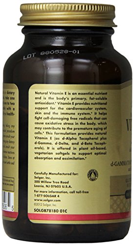 -. Feature : Helps fight cell-damaging free radicals that cause oxidative stress in the body, which may contribute to the premature aging of cells / Natural vitamin E (as D-alpha tocopherol plus D-beta, D-delta and D-gamma tocopherols) / Oil-based softgel to promote optimal absorption and assimilation