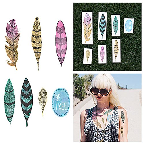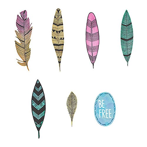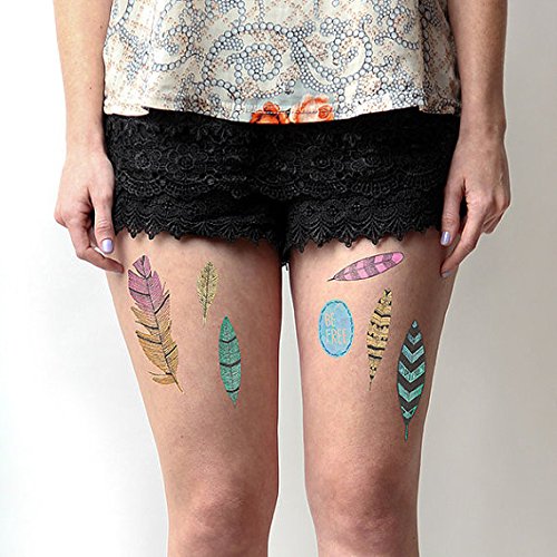 Tattify Hip Feather Temporary Tattoos - Freebird (Complete Set of 14 Tattoos - 2 of each Style) - Individual Styles Available and Fashionable Temporary Tattoos