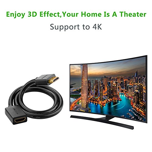 UGREEN HDMI Male to Female Extension Cable Gold Plated Supports 1080P and 3D for Blu Ray Player,3D Television, Roku, Boxee, Xbox360, PS3, Apple TV 2 Pack (1.5ft)