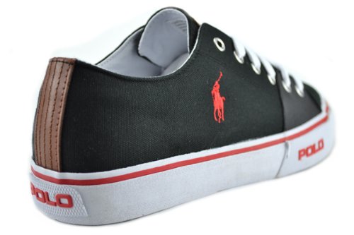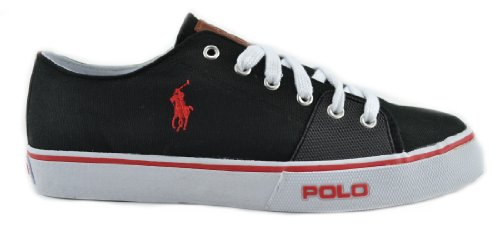 -. Binding : Apparel -. Brand : Polo -. Department : mens -. Feature : lace-up with metal eyelets / logo and stitching details / rubber traction outsole / 100% authentic -. ProductGroup : Shoes -. ProductTypeName : SHOES -. Title : Polo Cantor Low Canvas Mens Sneakers Black/Red