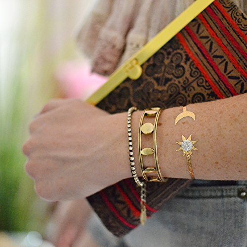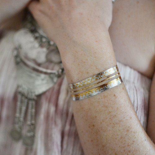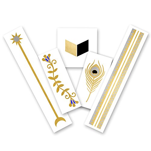 ⚡️ Set includes a mixed variety of 25 boho-inspired festival metallic temporary Flash Tattoos: Chevron (5), Peacock Feather (5), Celestial Cuff (5), Floral Dream (5) and Bohemian Geo Bracelet (5)