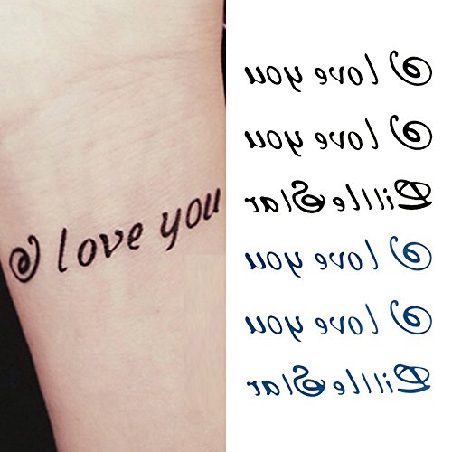 Oottati Small Cute Temporary Tattoo Love You Wrist (Set of 2)