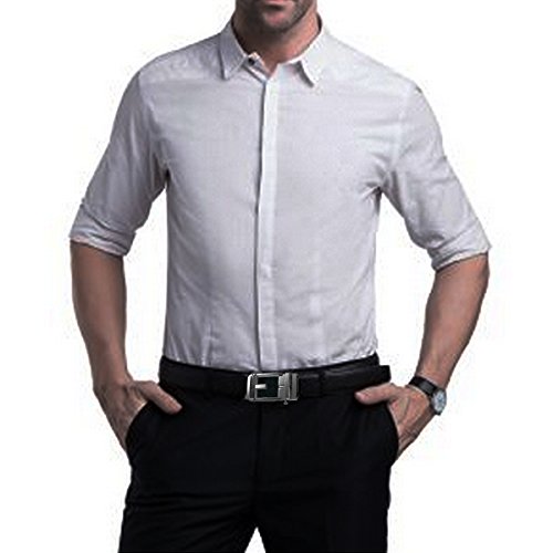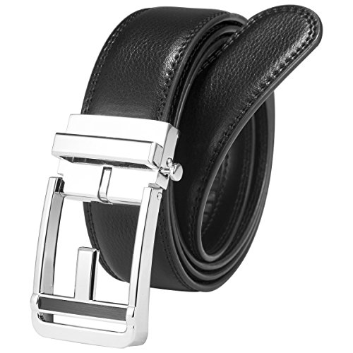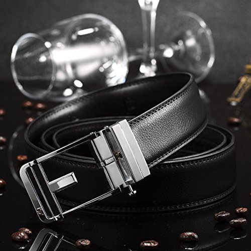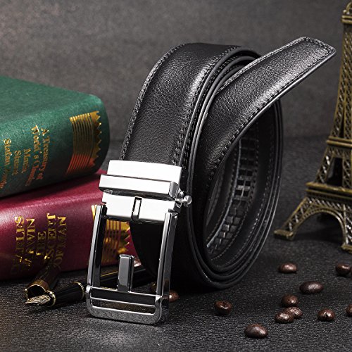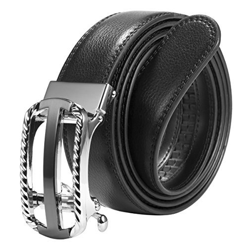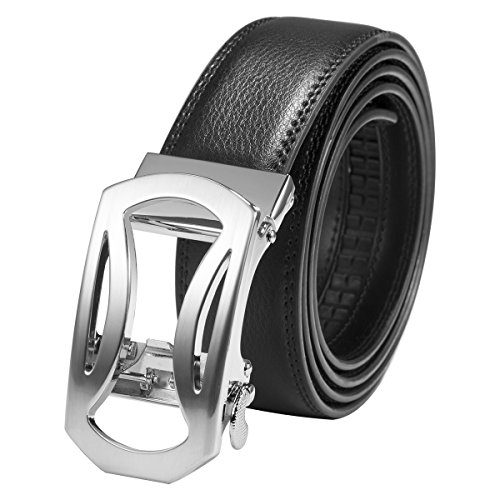 EASY TO USE - Steel auto buckle, double edge stitching. Durable rubber ratchet, no holds, easy to use. Just slide the leather belt into the belt buckle and pull the belt through, the buckle simply auto locks the belt; to release the belt, gently push the lever on the side of the buckle and lock will snap. Simple, smooth and sleek!