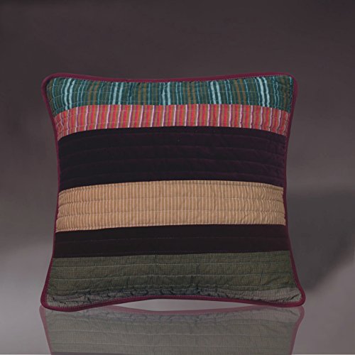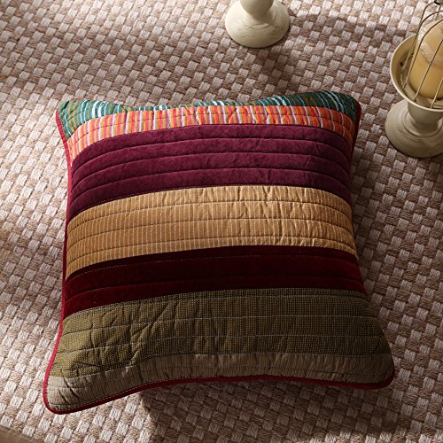 DaDa Bedding Set of Two Cotton Classical Desert Sands Real Patchwork Quilted Accent Pillow Cushion Covers Cases - Striped Velveteen Autumn Warm Earthy Tones Multi-Color Print - 18” x 18” 2-Pieces