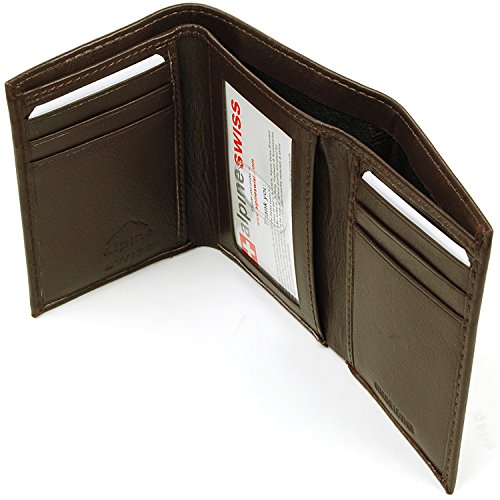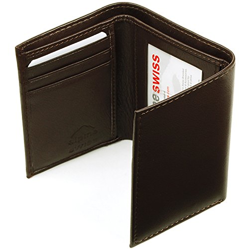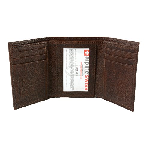 Studio : alpine swiss Publisher : alpine swiss Binding : Apparel Product Description This is a slim trifold with tight trim to allow you to carry a few?cards and?your money without having a big fat wallet. ?This wallet was designed with those who want to carry little and have a?small wallet in mind.?Product Features:Measures 4 1/8" x 3 1/4" x 1/2"Genuine Leather?Inside ID window with Easy Remove6 Credit Card Slots2 Additional PocketsFull Size Bill Section, Fully Lined.Made of?Real Leather Inside Out.Well constructed, Handmade with CareMSRP?$45.00? 0