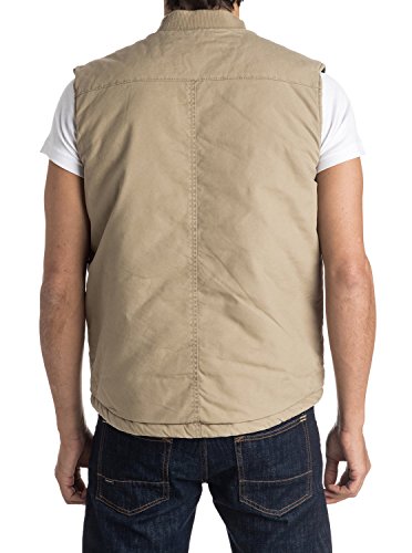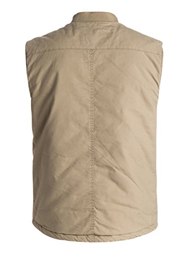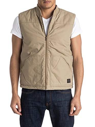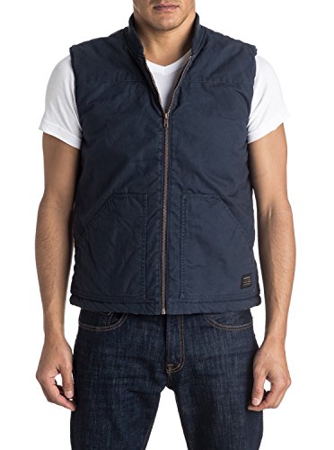 Studio : Quiksilver Young Men's Sportswear Publisher : Quiksilver Young Men's Sportswear Binding : Apparel Product Description Sleeveless jacket for men from Quiksilver. Features include: work wear-inspired design, cotton canvas fabric, quilted and brushed flannel lining, tonal rib knit on the collar, yoke panel on the chest and metal zip on the front. 0