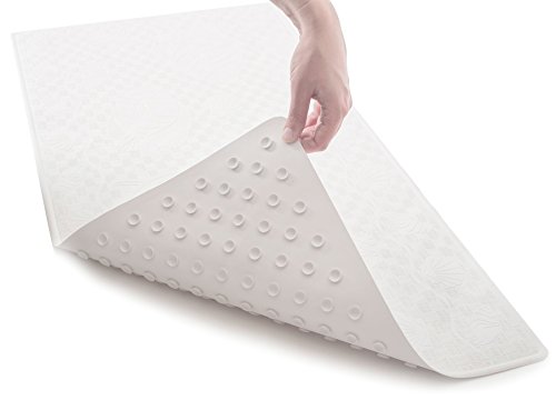 Does your bath tub get very slippery while you are taking a shower and are you tired of bath tub mats that don't stick to the tub? Wouldn't it be great if we can take a shower without being scared to fall? How will this non-slip bathtub mat help you overcome the problem? This professionally-made bath mat has hundreds of specially constructed and large suction cups on the mat's bottom which effectively provide slip resistance in the bathtub. Its subtle textured pattern on the mat's top surface provides great traction and slip resistance for your feet. What are the advantages and special features of this bath tub mat? ? Provides the most effective slip resistance in the bathtub. NOT SUITABLE FOR TEXTURED SURFACES ? Powerful GripTight TM Technology - Hundreds of specially engineered and large suction cups grip the tub bottom extremely tightly ? Stylish and elegant pattern design in a neutral color ? Non-toxic, allergen-free and free from BPA, phthalate esters, latex, cadmium, lead, and bromine ? Made of REACHED-approved, high quality and latex-free natural rubber - Protection against latex allergic reactions ? Anti-bacterial and mildew-resistant ? Durable, abrasion-resistant easy-to-clean
