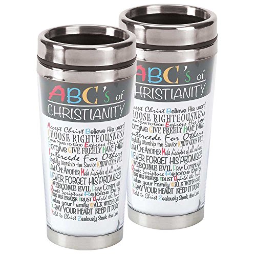 ABC's of Christianity Fun Font on White 16 Oz. Stainless Steel Insulated Travel Mug with Lid