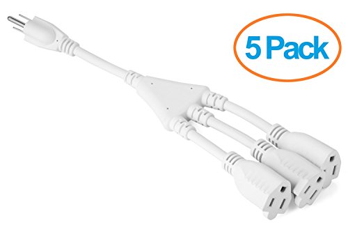 - VALUE PACK: Valued 5 pack power outlet splitter giving you the capability of additional outlets to that one outlet, extending the outlets on your power strip to avoid being cluttered by bulky power adapters or a great solution for adding some length to your current electronic device cords.