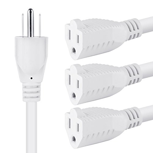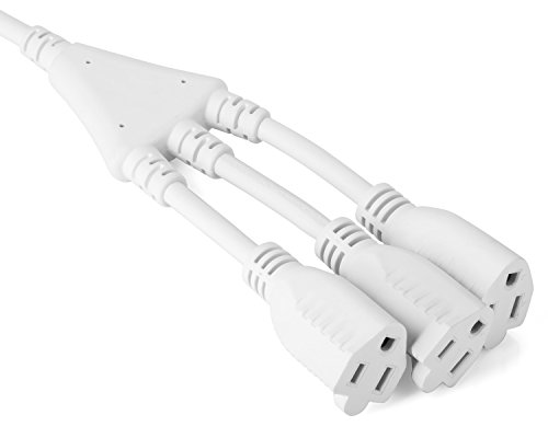 Aurum Cables 3 Prong 1-to-3 Power Cord Splitter Cable - Power Extension Cord - Cable Strip Outlet Saver - Outlet Splitter Electrical Cord - 1 Foot - 16AWG - UL approved - White - 5 Pack