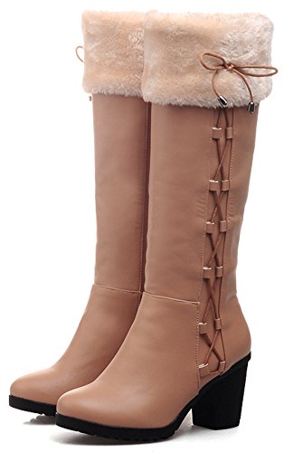 (Mofri)/Women's/Boots/DIRECT FROM USA/Mofri Women's Trendy Bow Drawstring Folded Top Round Toe High Block Heel Pull on Mid Calf Ridin...