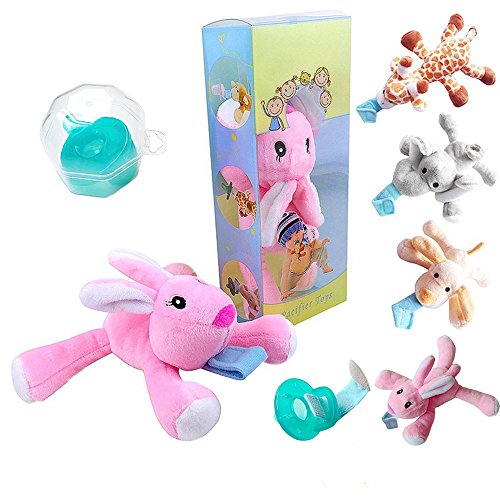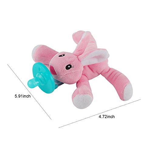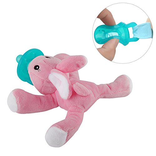 -. Feature : SAFETY - BPA free knitted polyester, made from non-toxic high-quality materials.Shield contours below baby's nose. Convenient and comfortable for babies to accept / DESIGN - Attaching the pacifier to the plush animal, prevents pacifier from being lost,dropped or even forgotten,Detachable design is convenient to clean / ATTRACTIVE - lush animal makes it easy for baby to grasp, can attract baby's attention when they are crying,help to exercise the baby's arm muscle,as well as the coordination of hand-eye ability. Can be used as a toy / ADVANTAGE - Environmental silicone material, high elasticity, excellent bite feeling, can help the baby to ease the pain of the teething, to correct the baby's bad habits like frequent sucking fingers