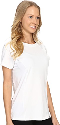 Get ready for ultimate performance comfort wearing the Under Armour Women's Kyro Short Sleeve CoolSwitch Trail Shirt. Short sleeve tee Fitted Crew neck Raglan sleeves CoolSwitch: interior coated with graphic that pulls heat from body Moisture transport system wicks away moisture leaving you dry and comfortable Mesh panels provide ventilation and increased airflow UA logo at hem and back 90% Polyester, 10% ElastaneFeature