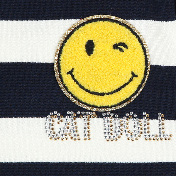 상품설명 스트라이프 프린지 포켓탑입니다. 빅포켓에 들어간 스웨이드 프린지와 스마일 와팬 장식이 유니크한데요. 같은 패턴의 치랭스와 세트코디도 넘 예쁘구요. 단품으로도 추천합니다.