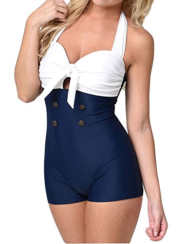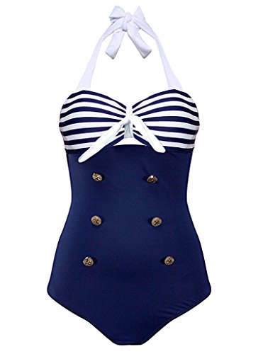 Material: 80% Nylon 20% Spandex Color:White/Blue Style: Retro Item includes: 1 x Swimsuits Other accessories not included
