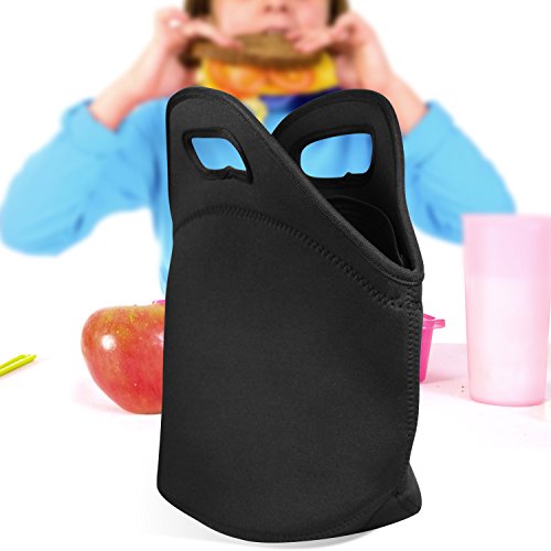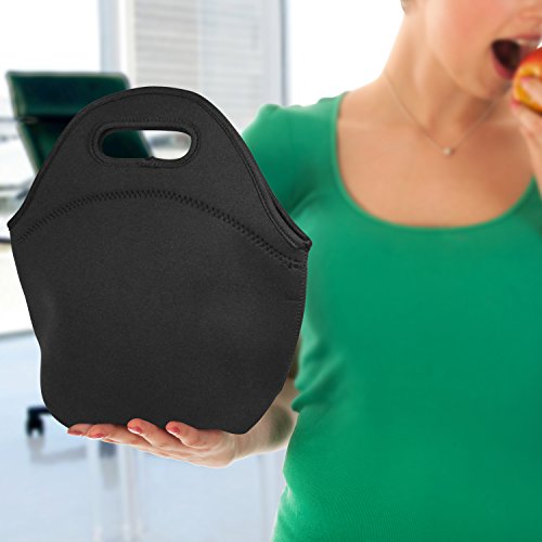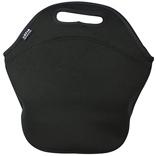 Reusable Neoprene Lunch Bag by Sofia - Large Capacity Insulated Lunch Box with Zipper, Durable and Weather Resistant, Keeps Foods Chilled or Hot Longer, Washable - Black