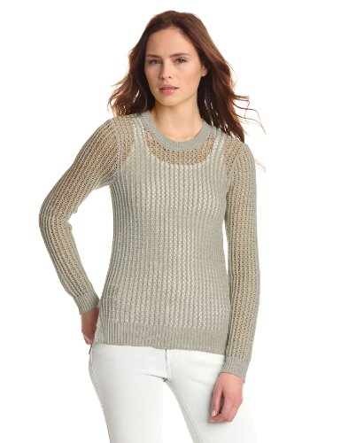This pullover sweater has a wide, waffle knit.