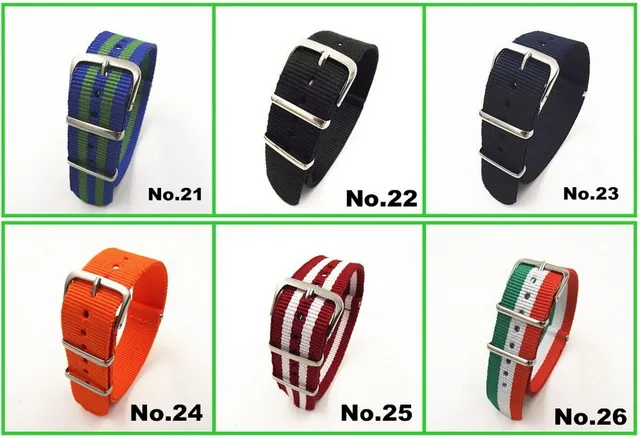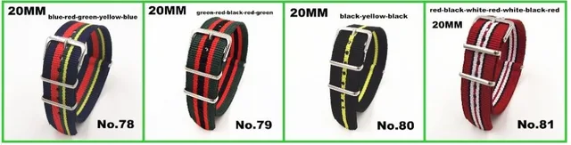 | [해외] 93 색상을 사용할 수 도매 10 개/몫 높은 품질 20 미리메터 나일론 시계 밴드 nato 방수 시계 스트랩 패션 wach 밴드 |
