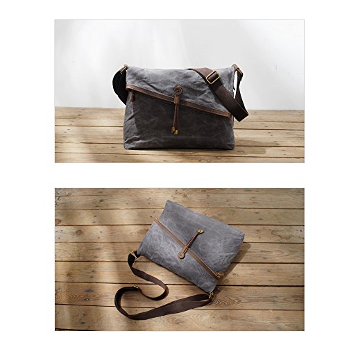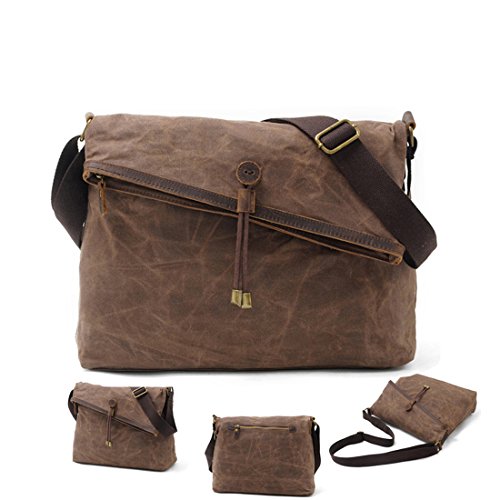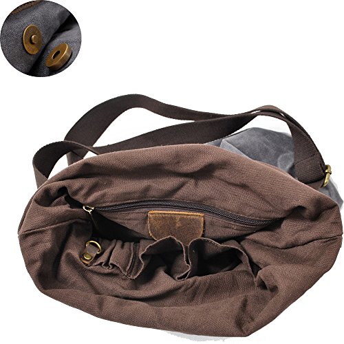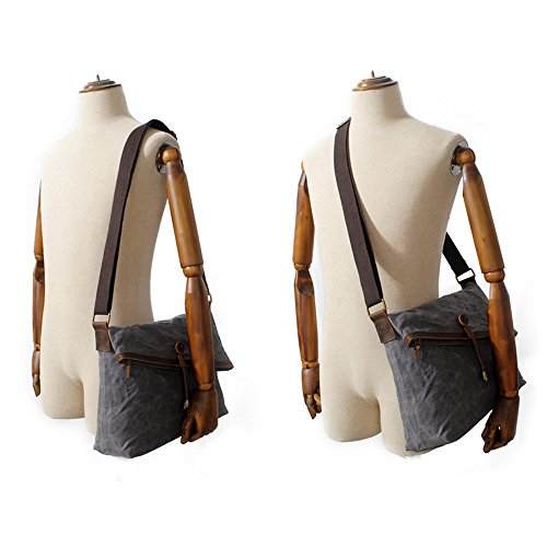 -. Title : Kemy's Large Canvas Crossbody Satchel Bags Genuine Leather Trim Travel Messenger Purse Unisex