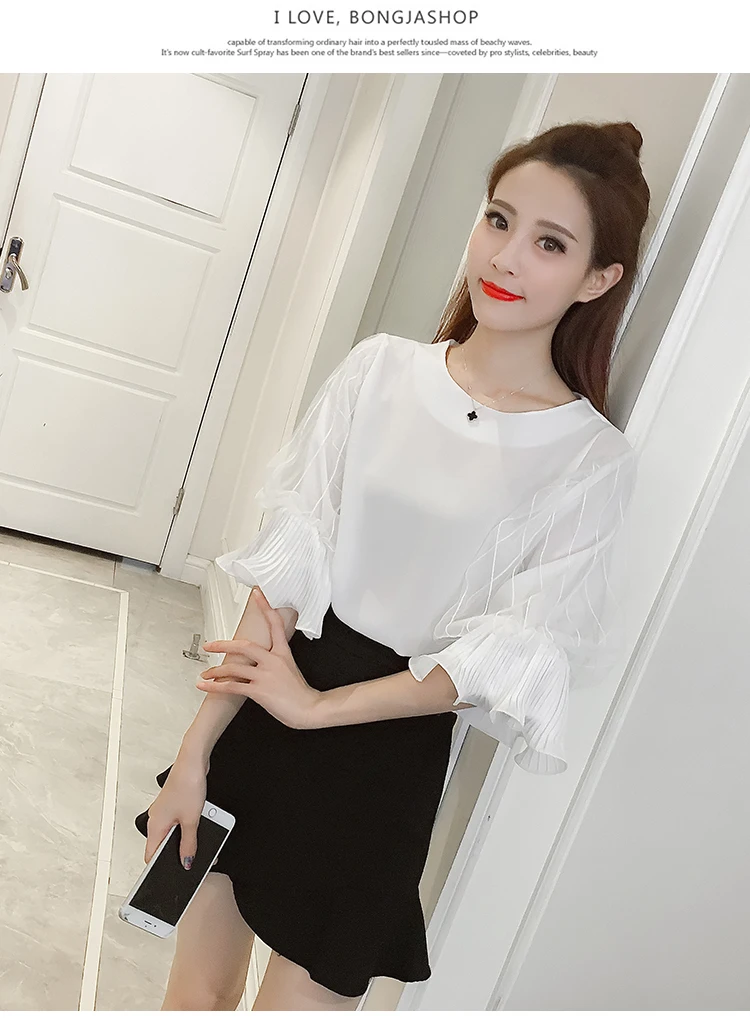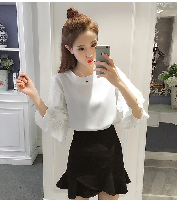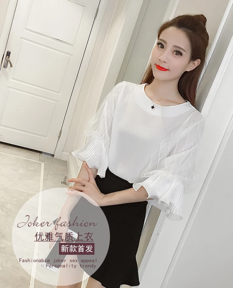 Women Tops Color:White Fashion Half Flare Sleeve Women Blouse blusa feminina