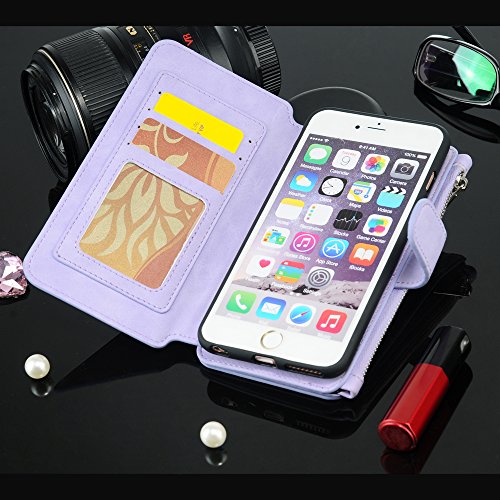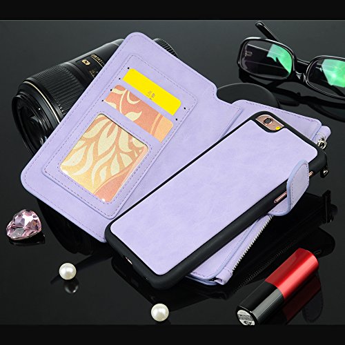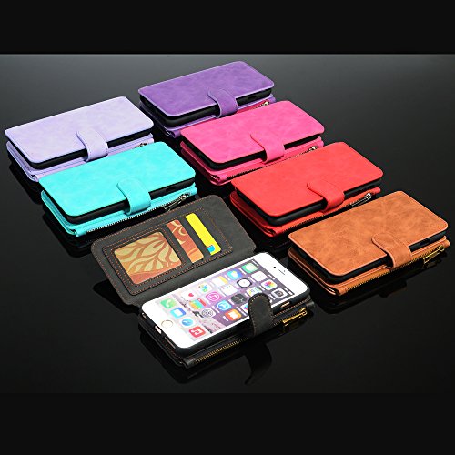 - Feature : Perfect Design for iPhone 6 / 6S / PU Leather material design, combined with a variety of elements, is a multi-functional wallet, protect shell, card slot, magnetic buckle to maintain the safety of your mobile phone, wallet zipper keeps you put something all! / Slim profile, business fashion noble appearance, magnetic suction shell with wallet separation, more convenient to answer the phone! Is a new design, the most humanized design! Feel is good, prevent slippery, can make the user feel a kind of unique feeling! / Separate for your ID and the card slot or a credit card, more secure wallet, so you can put all your valuables in one place! / Holds phone in place and does not restrict use of phone speakers, camera or buttons on phone.