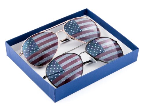 MJ Eyewear American Flag Aviator Sunglasses Glasses Gift Box