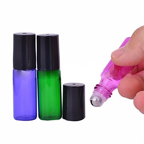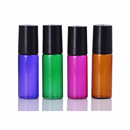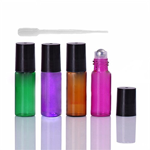 4 Color Empty Glass Metal Roller Bottles Refillable Container Holder With Free Dropper-5ML For Essential Oil /Perfumes/Lip Balms,4PC/Set
