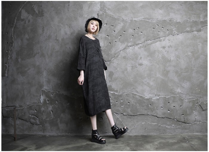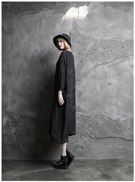 商品名:ワンピース レディース 膝丈 長袖 リネン混 春 2018 モード系 個性的 40代 ファッション