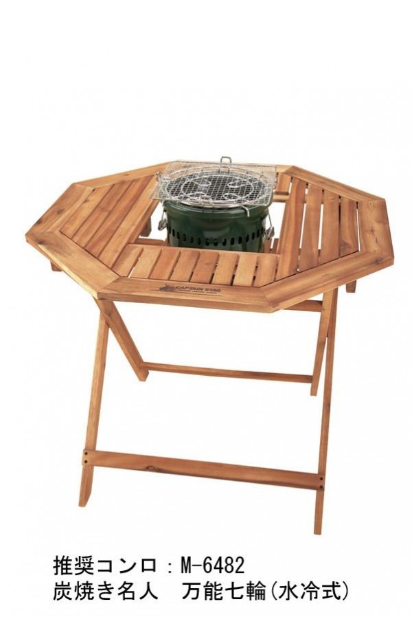 七輪がセットでき、バーベキューテーブルに早変わり。 製造国:ベトナム 素材・材質:天然木(表面加工:オイルステイン) 商品サイズ:(約)幅900×奥行900×高さ720mm、収納サイズ:(約)840×1060×厚さ85mm 重量:(約)7500g 仕様:折り畳み式 付属品:説明書 ※サプライヤー直送品 ご注文後3~4営業日後の出荷となります【商品名】CAPTAIN STAG CSクラシックス FD8角コンロテーブル(90) UP-1018