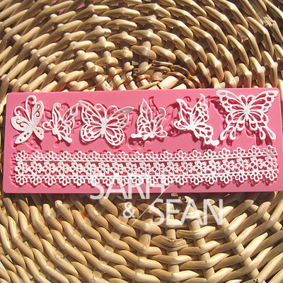 [Name]: L069 butterfly flower pattern combination of food-grade silicone mold lace fondant mold 18.8 * 6.8cm