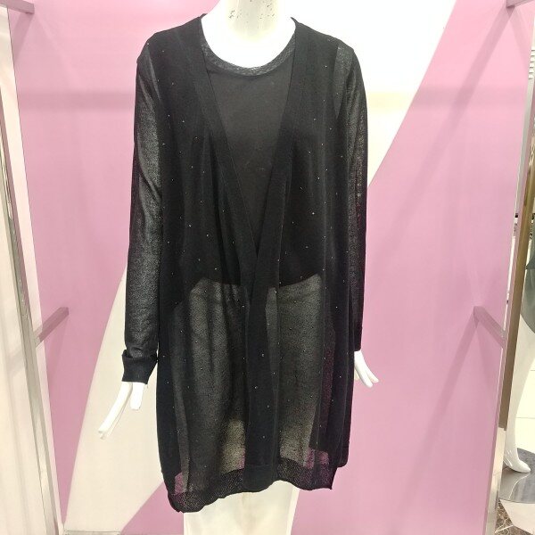 레이온 소재의 썸머 가디건.앞에 비즈로 포인트를 준 깔끔한 스타일의 가디건.여름에 필수 아이템.