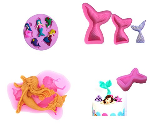 - VIVID MERMAID MOLD--4 Pcs Vivid Mermaid mold in Different stuly,perfect art decoration for you cake,great idea for you party