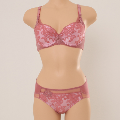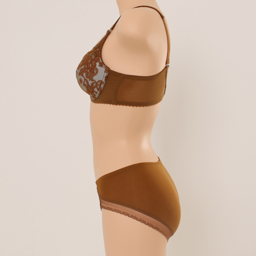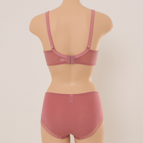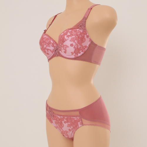 섬세하고 시스루한 망위에 플랫한 자수가 레이시 하면서 도 부담스럽지 않은 실루엣을 연출합니다.카키에 블루 레인지 매칭이 트렌디 하고 감각적이며 핑크에 살짝 비 쳐 올라오는 바이올렛 역시 여성스럽고 신비로움을 선사 합니다. 3t 두께의 패드에 전중심이 높은 플컵 설계로 편 안하고 안정감 있는 피팅감을 줍니다.