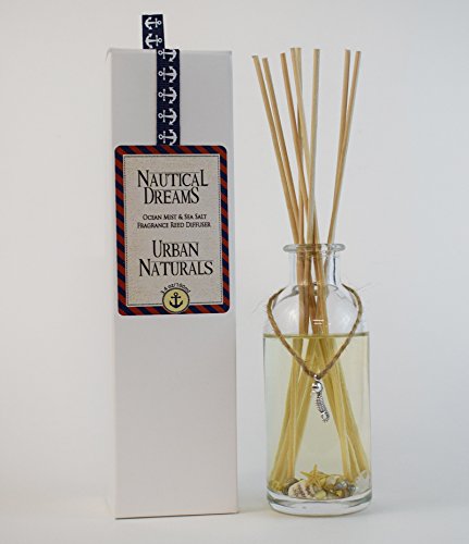 Ocean Mist and Sea Salt Scented Oil Reed Diffuser Set ~ Real Seashells & Starfish! Nautical Dreams by Urban Naturals Beach Themed Decor ~ Best Xmas Gift Idea for Mom, Dad, Aunt or Grandma