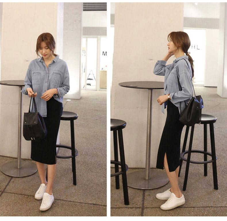 スカート丈もスリットの深さも通勤・通学のコーデに合わせやすくおススメです!
