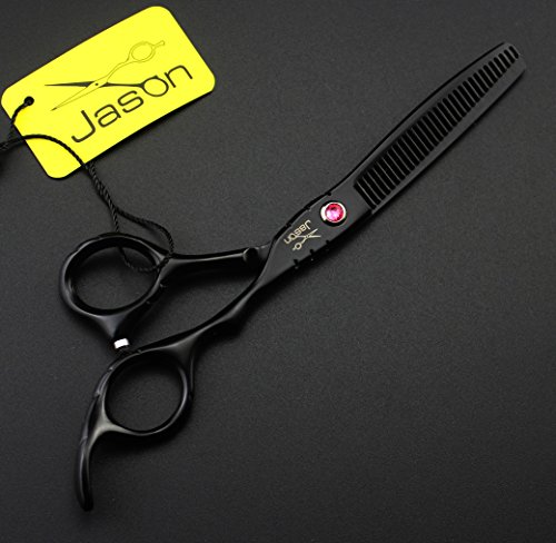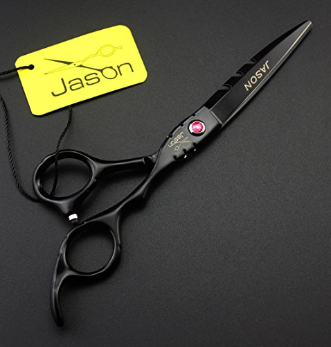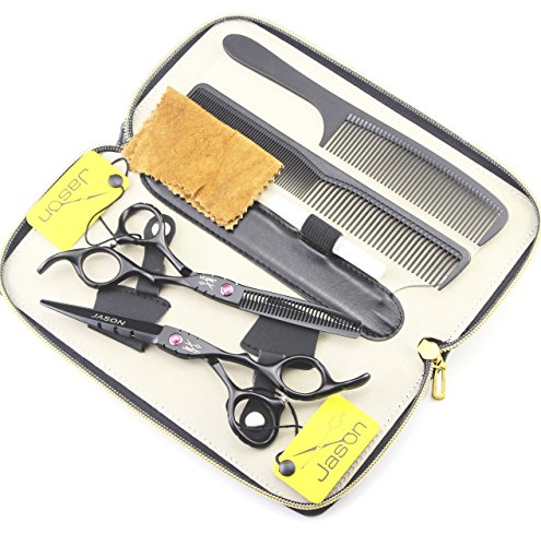 Jason Professional High Quality Black Hair Cutting Scissors Shears Barber Thinning Set Kit with Leather Case Salon Hairdresser Hair Cutting Tool (6.0 Inch)