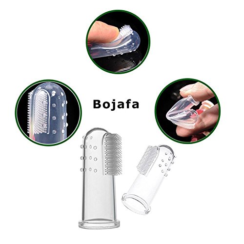 -. Feature : The finger toothbrush is made of silicone, food grade material. Security and health. / Helps reduce plaque and protect your dog's or cat's teeth and oral hygiene / Material: Food Grade Silicone / Size: About 5.5cm / Transparent color