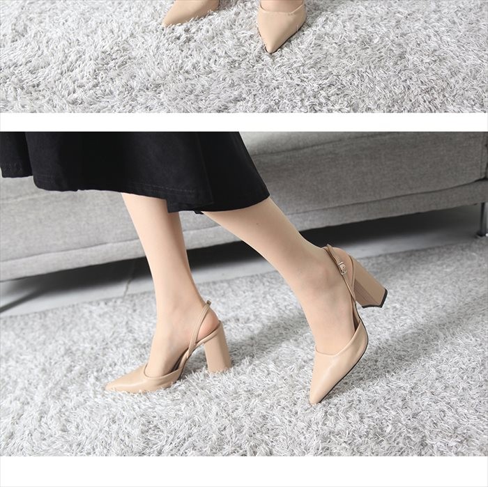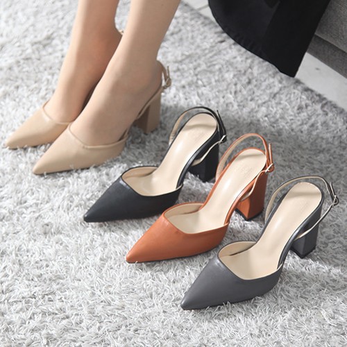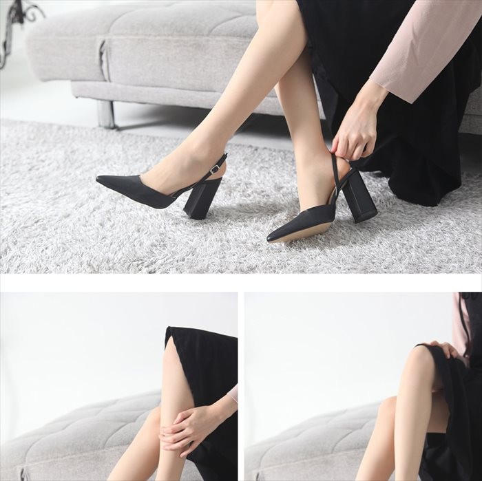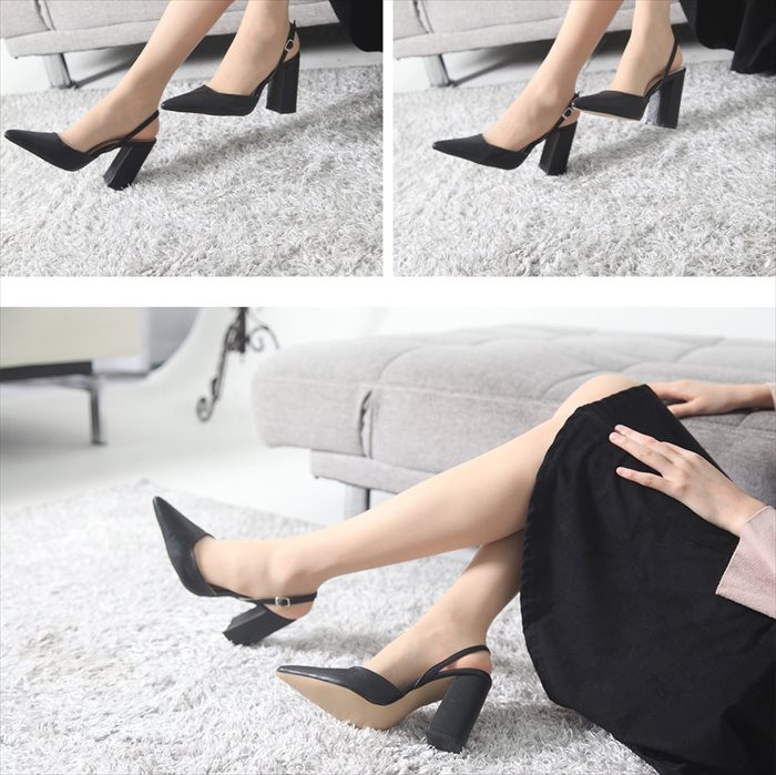 商品名:パンプス レディース スリングバック ポインテッドトゥ チャンキーヒール 太ヒール 2017 秋冬 ファッション 靴 婦人靴
